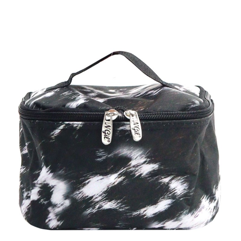 Sold as Size: 8 "L X 4 "D X 4 "H *Canvas Cow Splatter Cosmetic Bag *Zipper Top *Single Carry Handle *Monogram Ready *Trademark/Copyright Registered