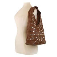 Sold as Size: 14.25" L X 4.5" D X 10" H *Fashion Faux Leather Hobo Handbag *Top Zipper Closure *Front Studded Accents *Inside Open Pockets *Inside Zipper Pockets