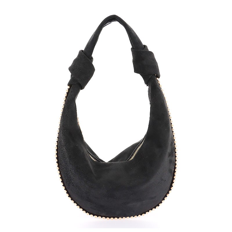 *Fashion Vegan Suede Hobo Bag with Metal Studs