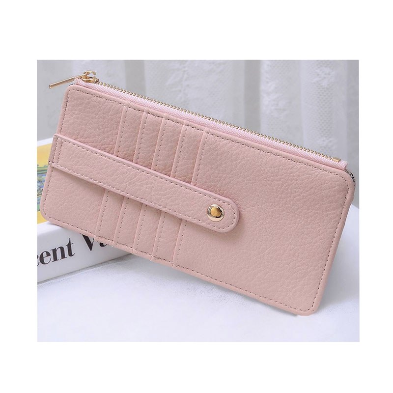 Sold as Size: 4" L X .5" D X 7" H *Fashion Faux Leather Key Chain Card Wallet Fashion Slim Card Holder Wallet Faux vegan leather Push-snap & Zip top closure Gold-tone hardware