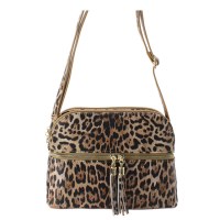 Sold as Size: 10.5 "L X 4 "D X 7.5 "H *Fashion Faux Leopard Two-Tone Messenger Bag with Fringe Tassell *Dual Zipper Top Compartments with Open Middle Compartment *Inside Open Pocket + Zipper Pocket *Zipper Tassel Front Pocket (Monogram Ready) *Adjustable Sh