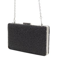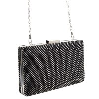 Sold as Size: 8 "L X 1.5 "D X 5 "H *Fashion Faux Leather Rhinestone Clutch Bag *Push Tab on Frame *Shoulder Chain Included