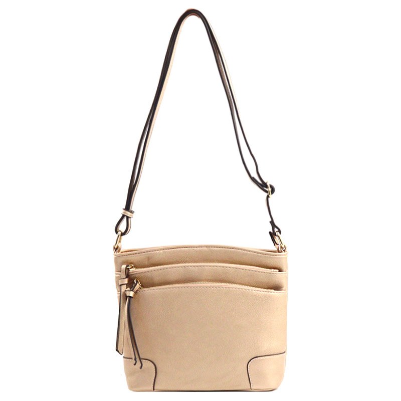 Sold as Size: 11 "L X 3.75 "D X 9.5 "H *Fashion Faux Leather Messenger Bag *1 Main Zipper Top + 2 Front Zipper Pockets with Tassell *Inside Zipper + Open Pockets *Backside Zipper Pocket *Attached Adjustable Strap *Gold Tone Metal Accent *Monogram Ready