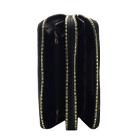 Sold as Size: 7.75 "L X 1.5 "D X 4 "H *Fashion Faux Leather Wallet *Dual Zipper Compartments *Gold Zipper *Multiple Slots for Cards *Divider Zipper Pocket *Checkbook Holder *Backside Zipper Pocket *Wristlet Included *Trademark Registered