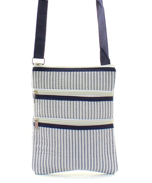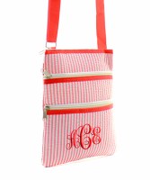 Sold as Size: 8 "L X 0.5 "D X 10 "H *Seersucker Messenger Bag *Zipper Top *Multiple Zipper Compartments *Adjustable Shoulder Strap *Monogram Ready