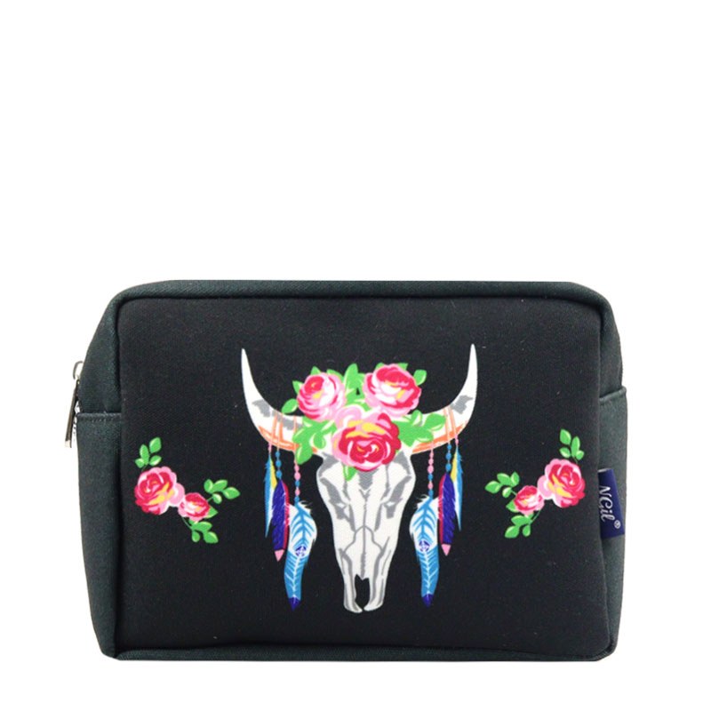 Sold as Size: 9 "L X 3 "D X 6.5 "H *Canvas Steer Head Cosmetic Case *Zipper Top *Monogram Ready