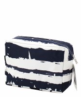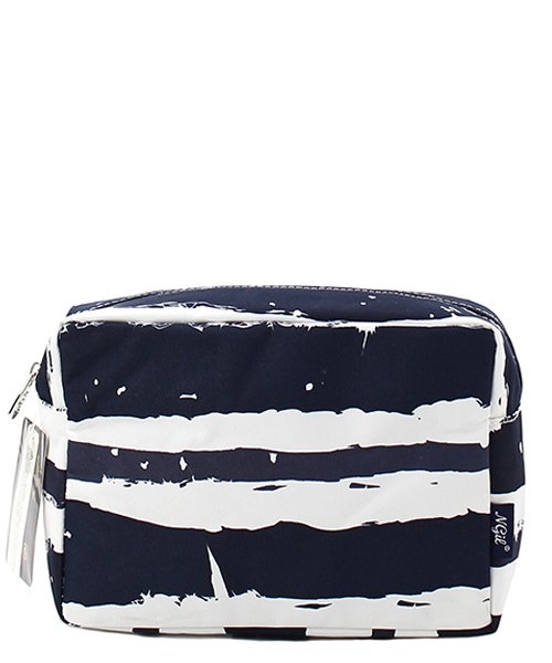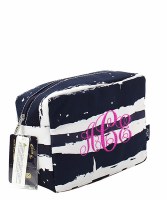 Sold as Size: 9 "L X 3 "D X 6.5 "H *Canvas Sand Stripe Cosmetic Bag *Zipper Top *Gingham Lining *Monogram Ready (Great for Bridesmaids)